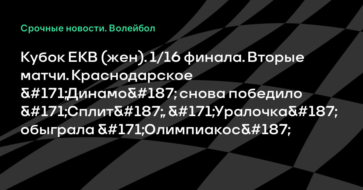 Кубок ЕКВ (жен). 1/16 финала. Вторые матчи. Краснодарское «Динамо» снова победило «Сплит», «Уралочка» обыграла «Олимпиакос»