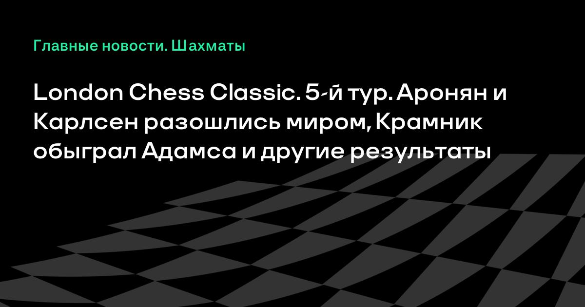 London Chess Classic. 5-й тур. Аронян и Карлсен разошлись миром, Крамник обыграл Адамса и другие результаты