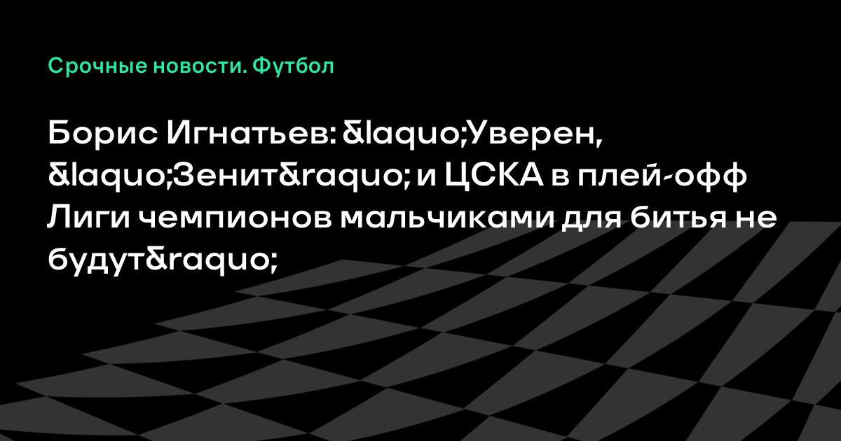 «Очень рад, что впервые за долгие годы две наши команды сумели пробиться в плей-офф Лиги чемпионов.Уверен, что мальчиками для битья ЦСКА и «Зенит» здесь выглядеть не будут.