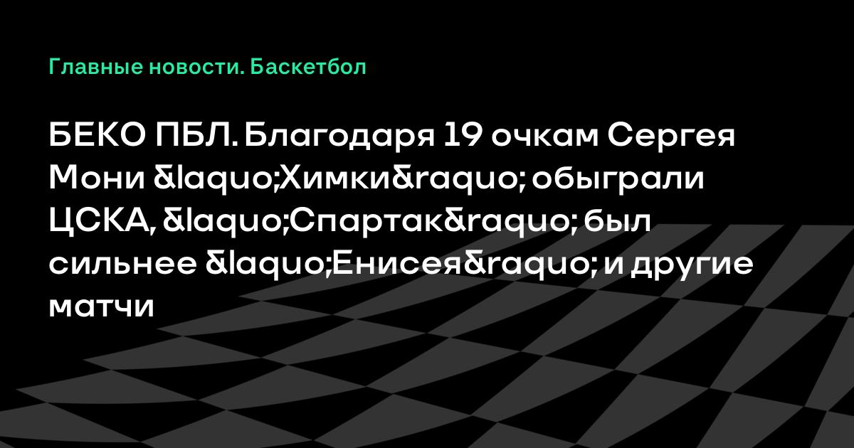 БЕКО ПБЛ. Благодаря 19 очкам Сергея Мони «Химки» обыграли ЦСКА, «Спартак» был сильнее «Енисея» и другие матчи
