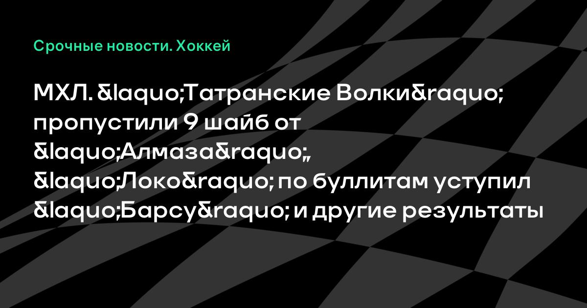 МХЛ. «Татранские Волки» пропустили 9 шайб от «Алмаза», «Локо» по буллитам уступил «Барсу» и другие результаты