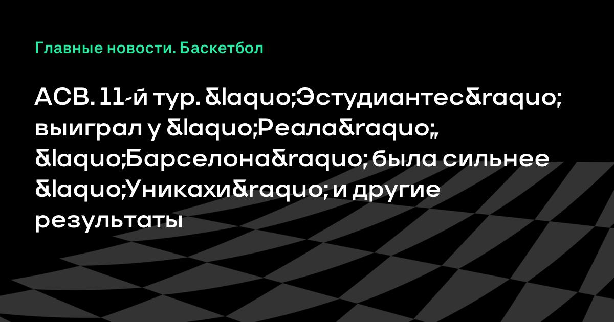 ACB. 11-й тур. «Эстудиантес» выиграл у «Реала», «Барселона» была сильнее «Уникахи» и другие результаты
