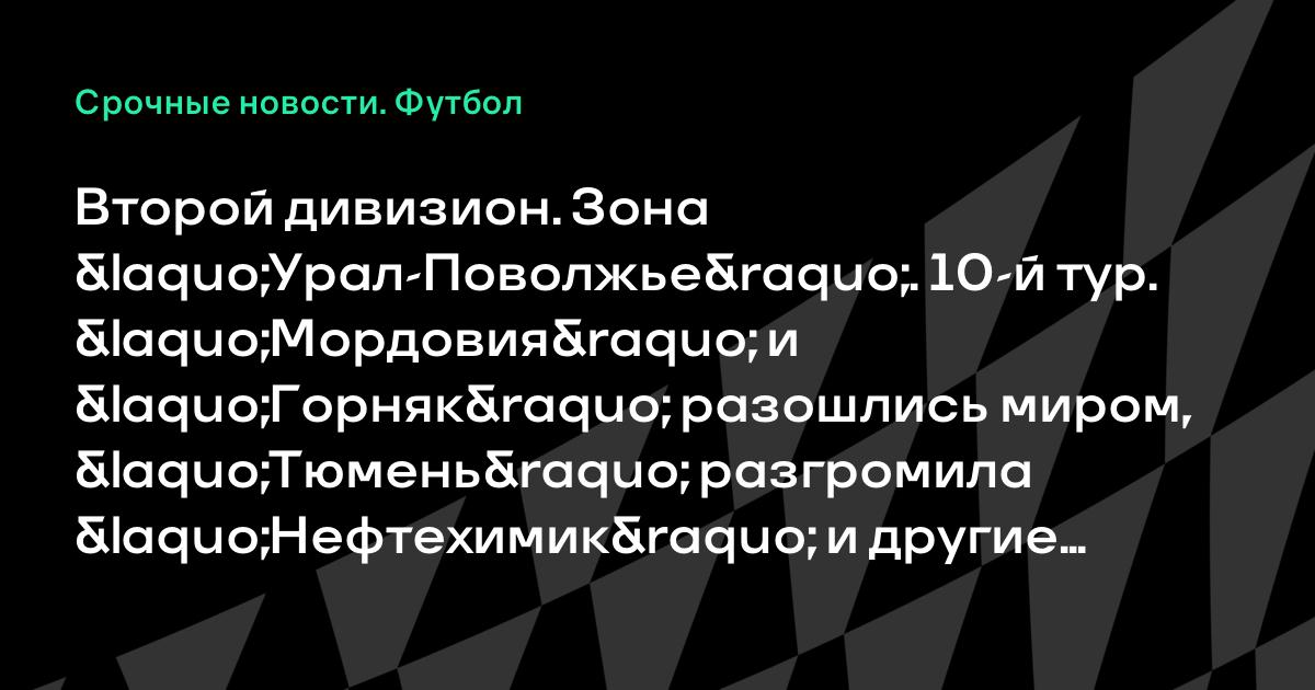 Второй дивизион. Зона «Урал-Поволжье». 10-й тур. «Мордовия» и «Горняк» разошлись миром, «Тюмень» разгромила «Нефтехимик» и другие результаты