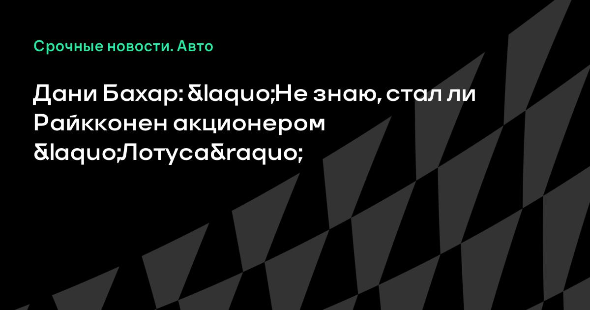 Исполнительный директор группы «Лотус» Дани Бахар заявил, что не знает, стал ли новый пилот команды «Формулы-1» «Лотус» Кими Райкконен ее акционером. Напомним, что ранее в прессе появлялась информация о том, что контракт Райкконена и «Лотуса» может включать пункт, по которому Кими получил часть акций конюшни.