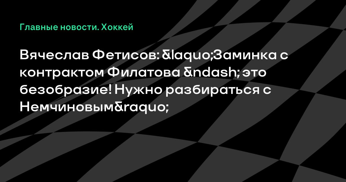 Вячеслав Фетисов: «Заминка с контрактом Филатова – это безобразие! Нужно разбираться с Немчиновым»