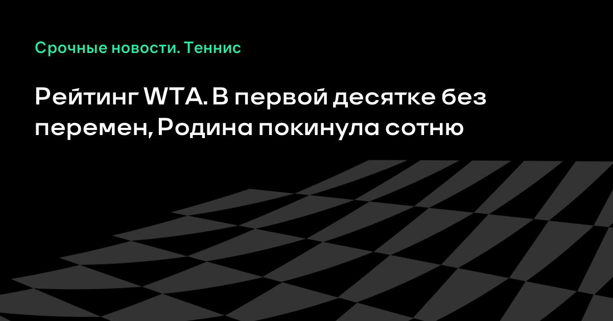 Рейтинг WTA. В первой десятке без перемен, Родина покинула сотню
