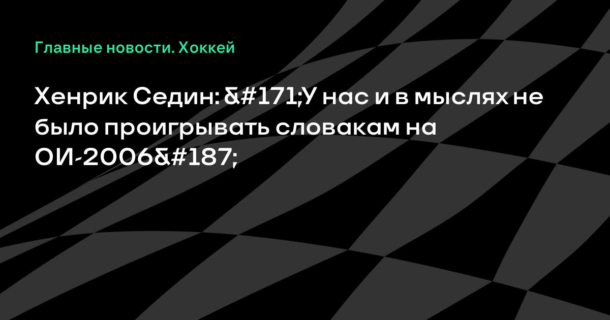 Хенрик Седин: «У нас и в мыслях не было проигрывать словакам на ОИ-2006»