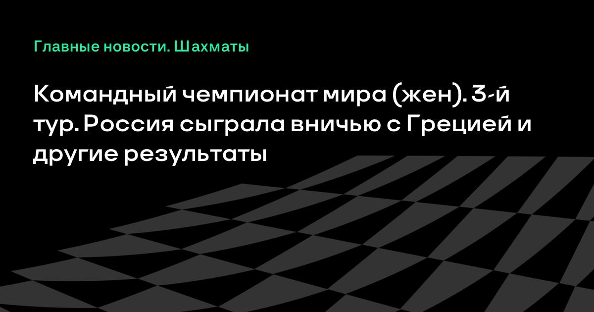 Командный чемпионат мира (жен). 3-й тур. Россия сыграла вничью с Грецией и другие результаты