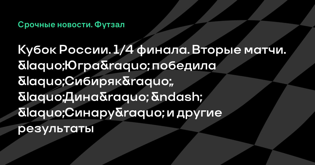 Кубок России. 1/4 финала. Вторые матчи. «Югра» победила «Сибиряк», «Дина» – «Синару» и другие результаты
