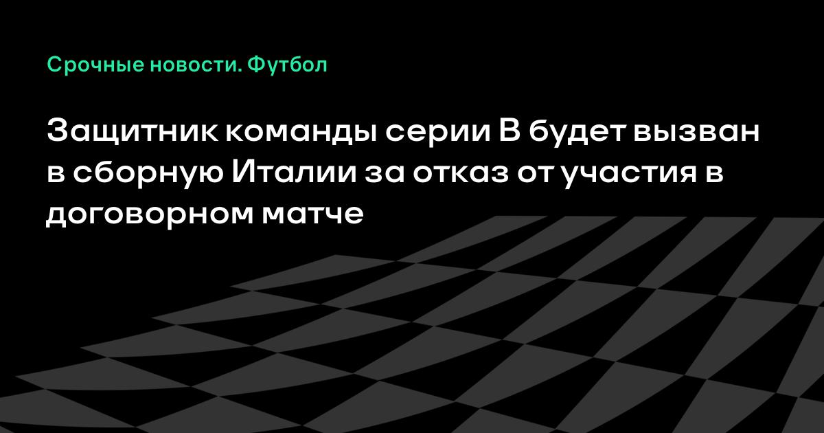 Защитник команды серии B будет вызван в сборную Италии за отказ от участия в договорном матче
