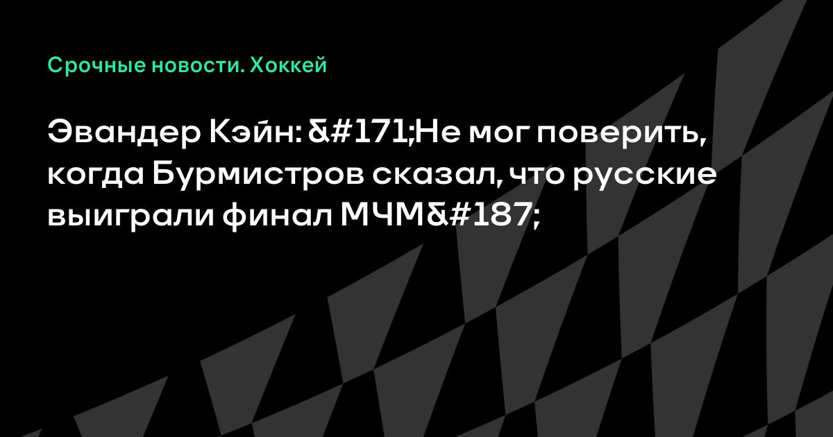 Эвандер Кэйн: «Не мог поверить, когда Бурмистров сказал, что русские выиграли финал МЧМ»