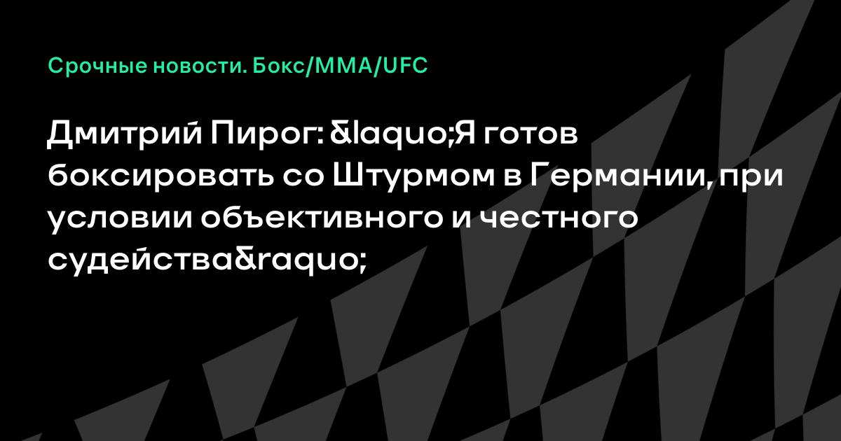 Чемпион мира в среднем весе по версии WBO 31-летний российский боксер Дмитрий Пирог заявил о своей готовности встретиться с обладателем титула «суперчемпиона» по версии WBA 32-летним немцем боснийского происхождения Феликсом Штурмом. Вчера поступила информация от немецкого телеканала Sat.1 о том, что следующий бой Штурма запланирован на 13 апреля. Пирог готов перестроить свой график для встречи с немцем.