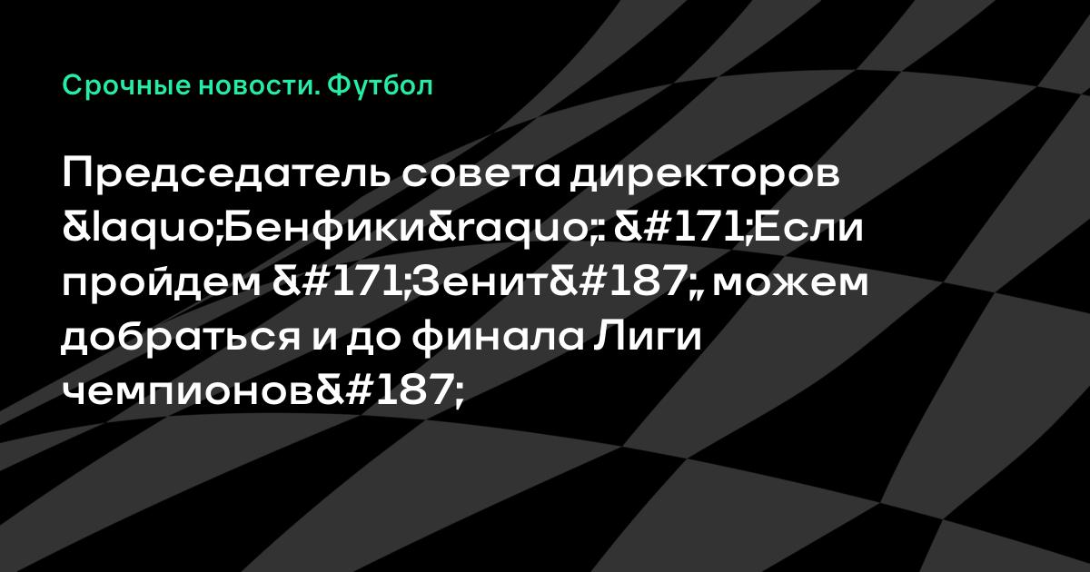 Председатель совета директоров «Бенфики»: «Если пройдем «Зенит», можем добраться и до финала Лиги чемпионов»