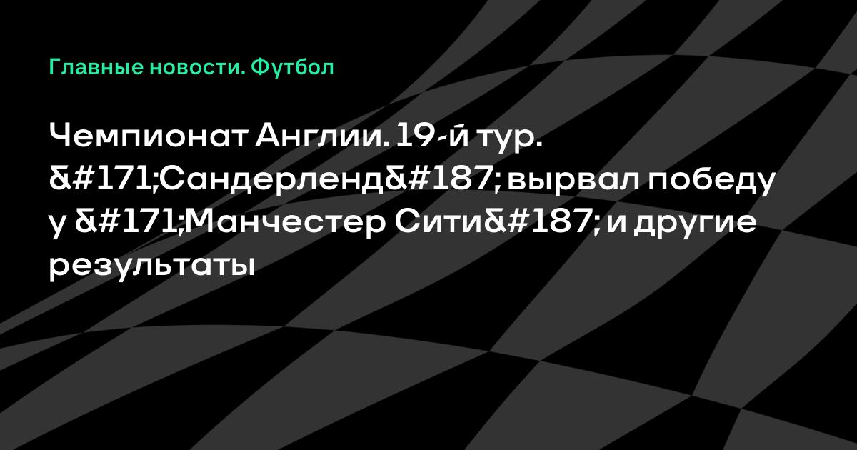 Чемпионат Англии. 19-й тур. «Сандерленд» вырвал победу у «Манчестер Сити» и другие результаты