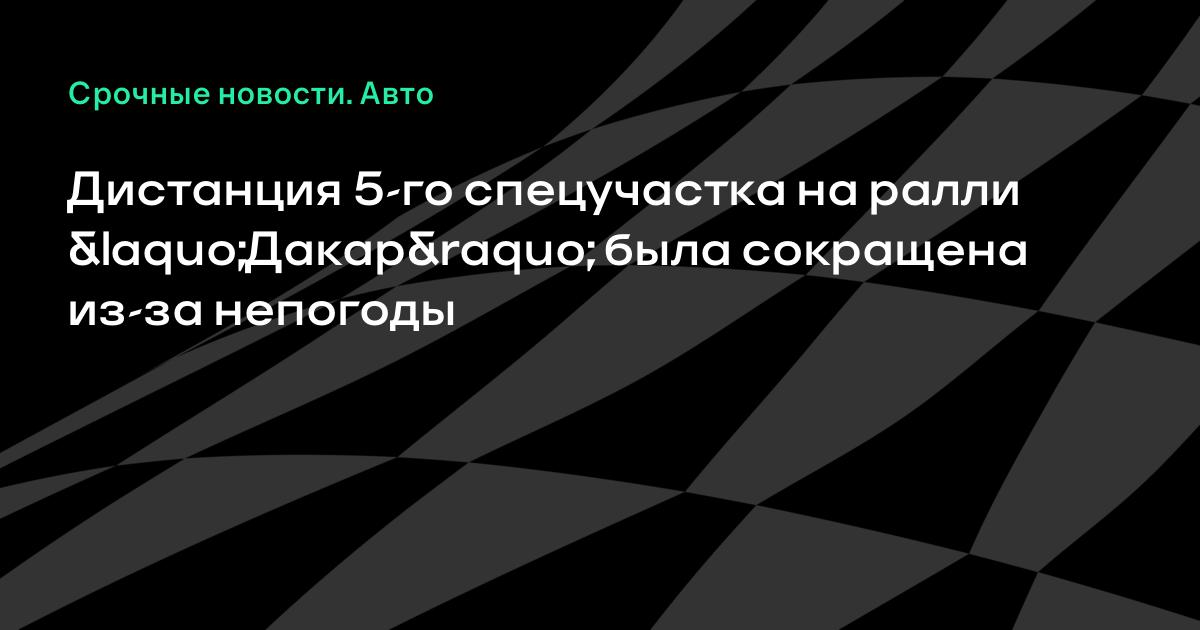 Организаторы ралли «Дакар» приняли решение сократить дистанцию пятого спецучастка из-за сильного ливня, обрушившегося на провинцию Катамарка. В результате непогоды организаторам пришлось отложить старт ралли в классе мотоциклов, а затем, основываясь на данных экипажей разведки, а затем и сократили дистанцию общей протяженности этапа, сообщает официальный сайт ралли «Дакар».