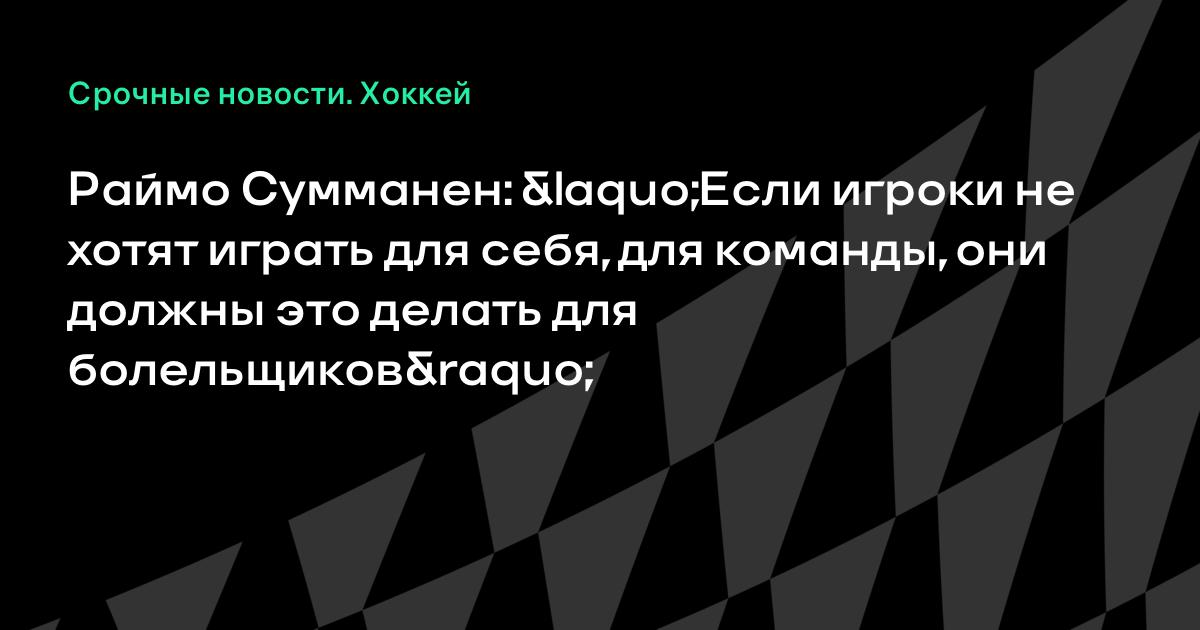 Раймо Сумманен: «Если игроки не хотят играть для себя, для команды, они должны это делать для болельщиков»