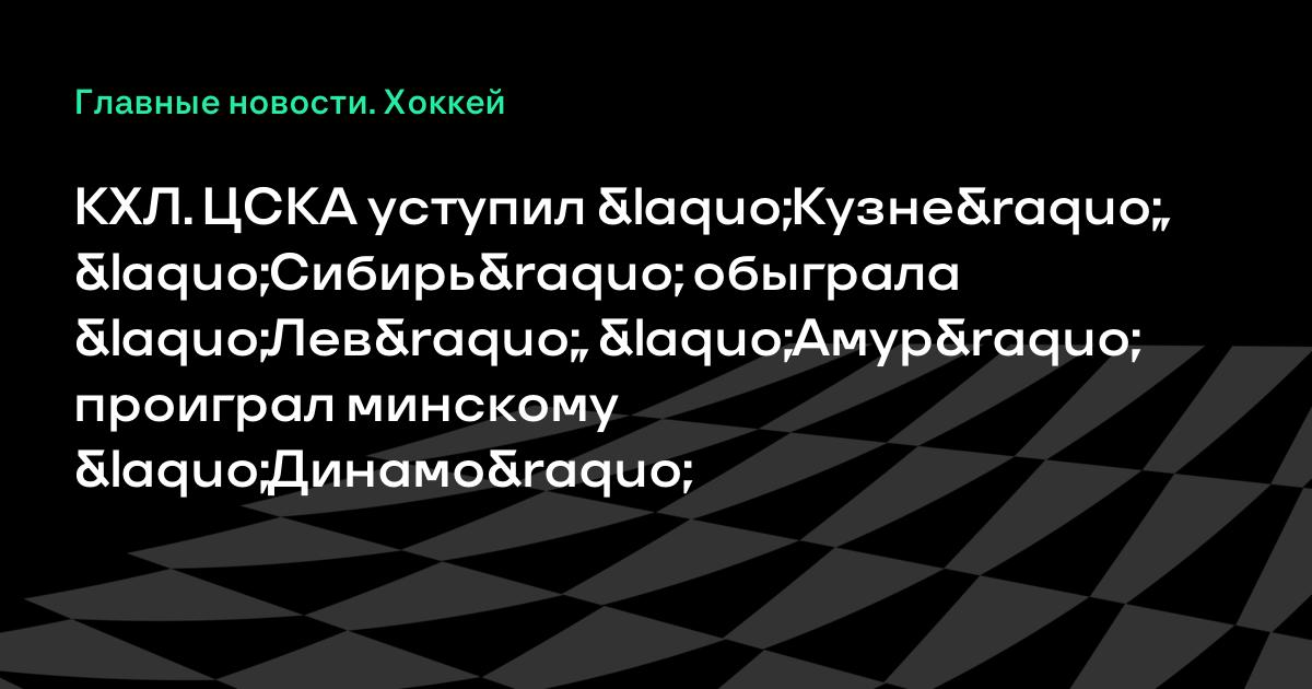 КХЛ. ЦСКА уступил «Кузне», «Сибирь» обыграла «Лев», «Амур» проиграл минскому «Динамо»