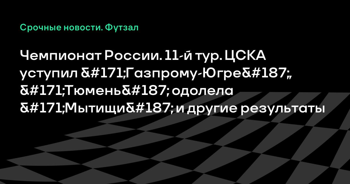 Чемпионат России. 11-й тур. ЦСКА уступил «Газпрому-Югре», «Тюмень» одолела «Мытищи» и другие результаты