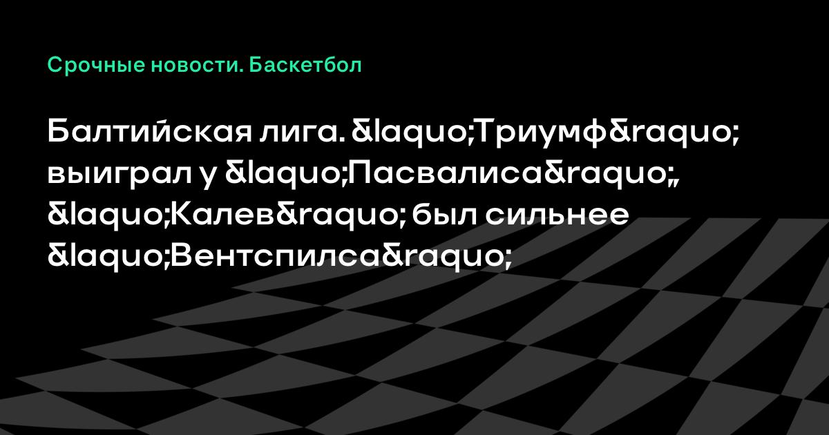 Балтийская лига. «Триумф» выиграл у «Пасвалиса», «Калев» был сильнее «Вентспилса»