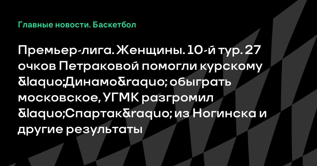 Премьер-лига. Женщины. 10-й тур. 27 очков Петраковой помогли курскому «Динамо» обыграть московское, УГМК разгромил «Спартак» из Ногинска и другие результаты