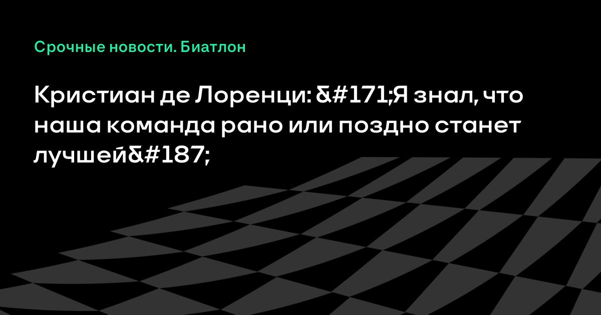 Мы не собирались побеждать, погодные условия желали лучшего. Но я знал, что наша команда рано или поздно станет лучшей. Я хочу посвятить эту победу нашим тренерам и Федерации биатлона Италии», – приводит слова Де Лоренци Ilsussidiario.net.