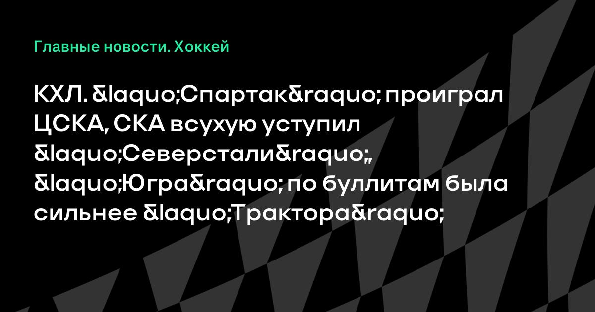 КХЛ. «Спартак» проиграл ЦСКА, СКА всухую уступил «Северстали», «Югра» по буллитам была сильнее «Трактора»