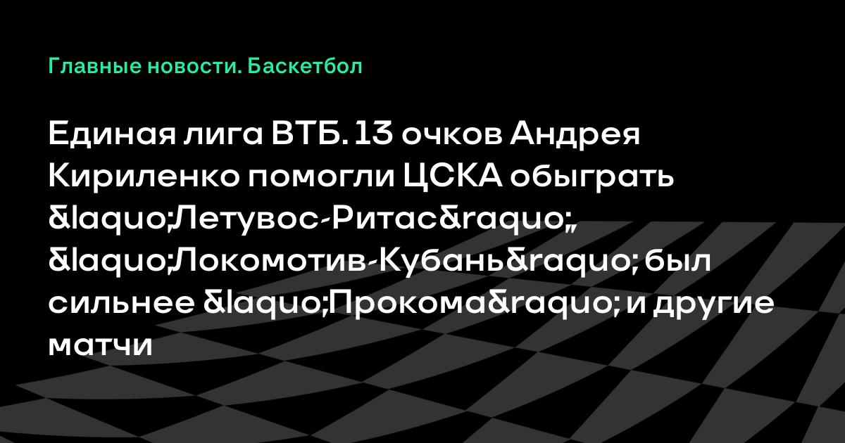 Единая лига ВТБ. 13 очков Андрея Кириленко помогли ЦСКА обыграть «Летувос-Ритас», «Локомотив-Кубань» был сильнее «Прокома» и другие матчи