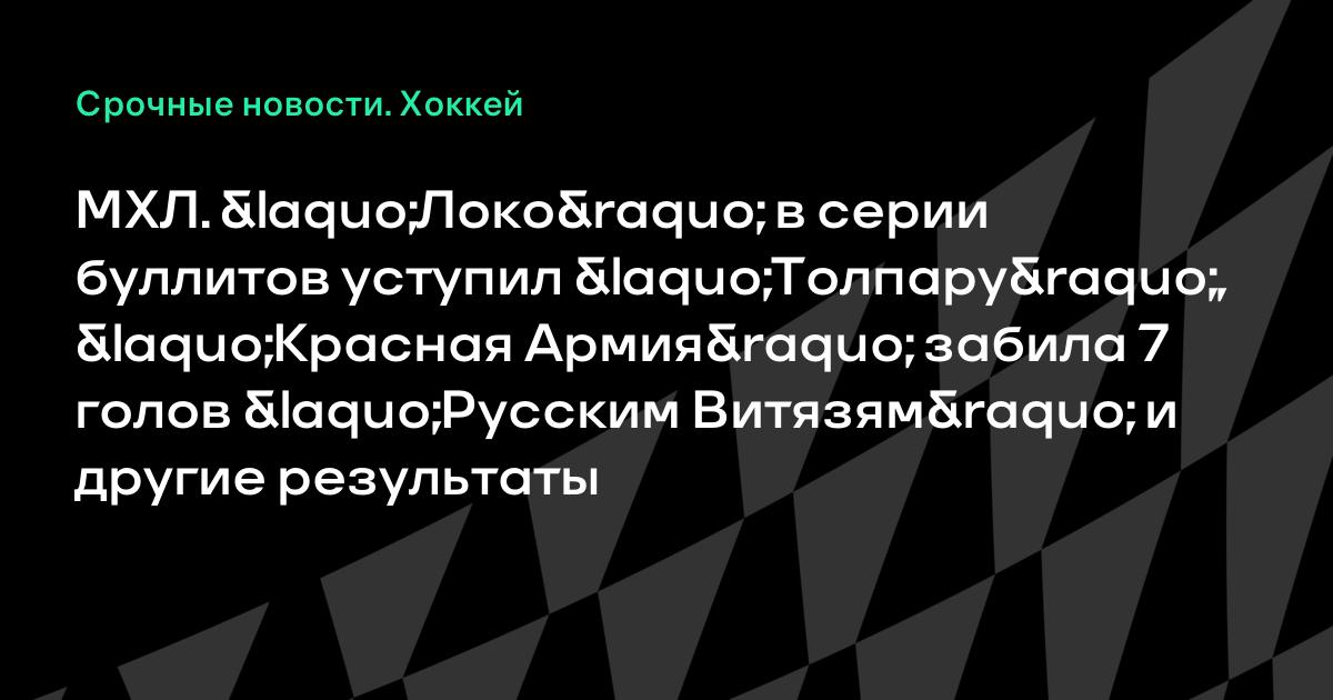 МХЛ. «Локо» в серии буллитов уступил «Толпару», «Красная Армия» забила 7 голов «Русским Витязям» и другие результаты