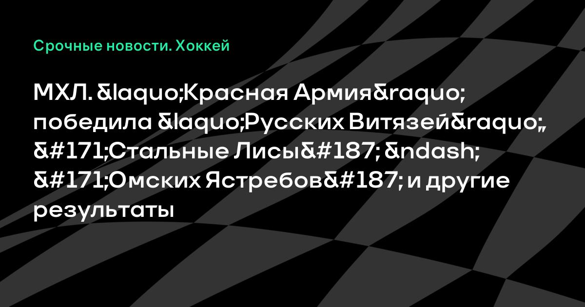 МХЛ. «Красная Армия» победила «Русских Витязей», «Стальные Лисы» – «Омских Ястребов» и другие результаты