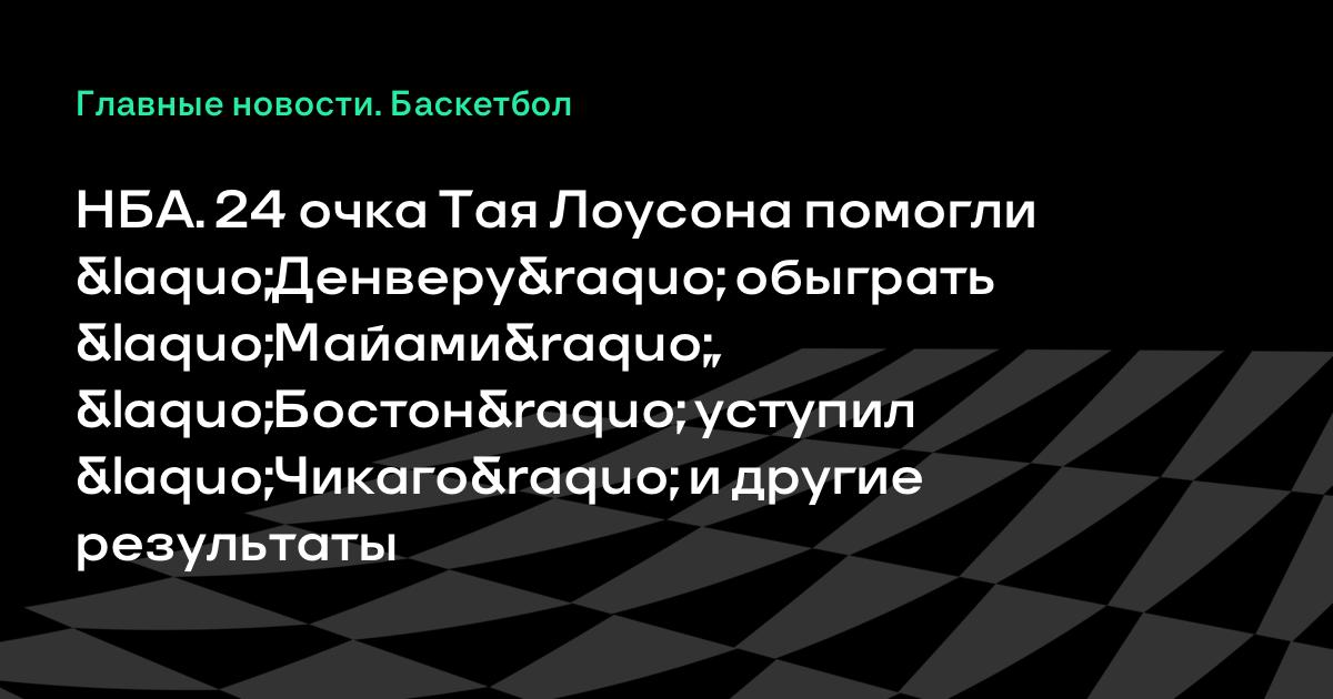 НБА. 24 очка Тая Лоусона помогли «Денверу» обыграть «Майами», «Бостон» уступил «Чикаго» и другие результаты