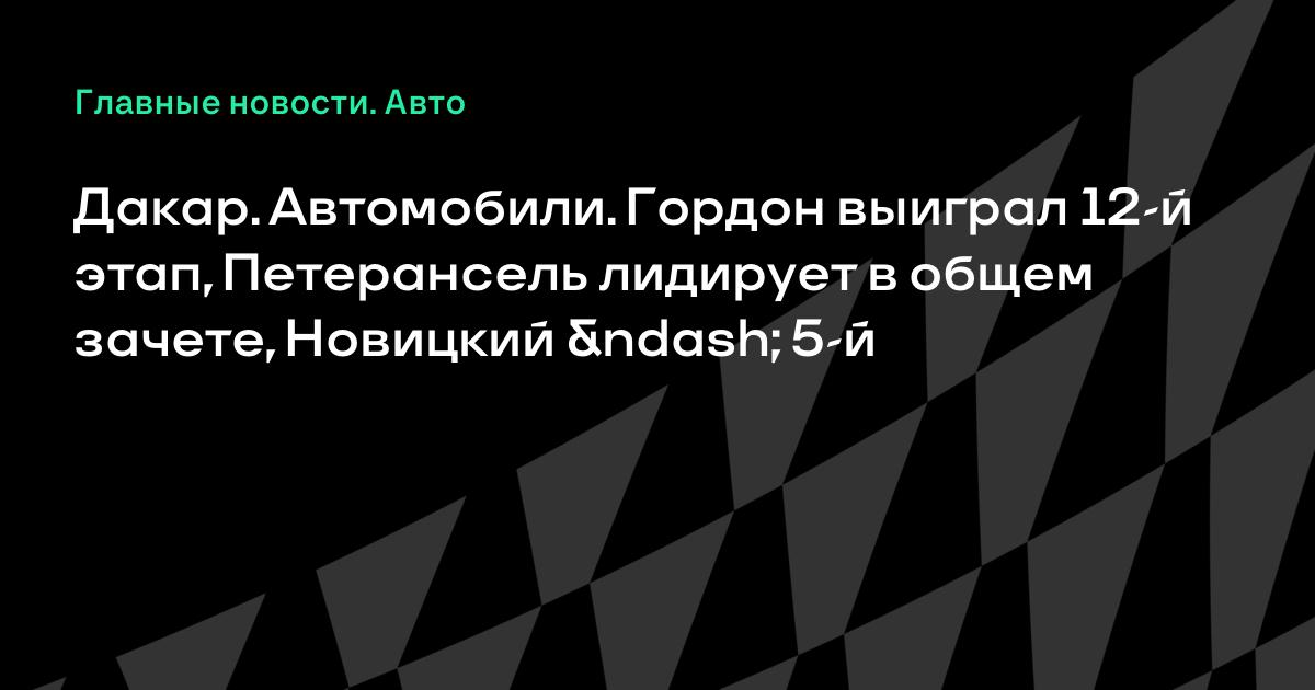 Дакар. Автомобили. Гордон выиграл 12-й этап, Петерансель лидирует в общем зачете, Новицкий – 5-й