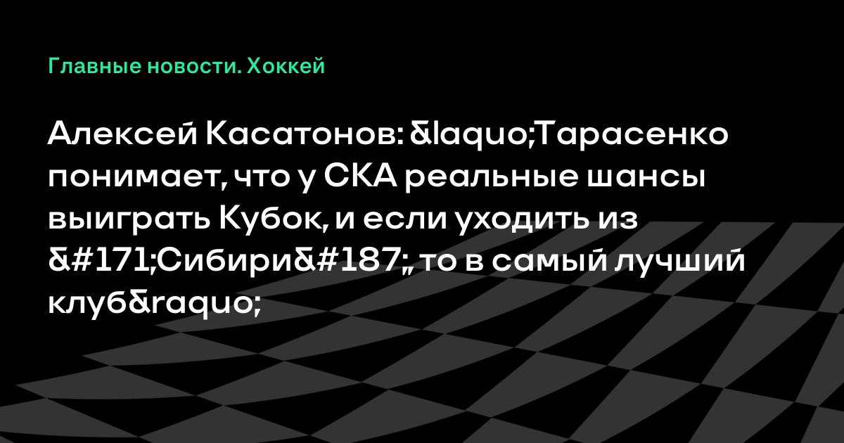Алексей Касатонов: «Тарасенко понимает, что у СКА реальные шансы выиграть Кубок, и если уходить из «Сибири», то в самый лучший клуб»
