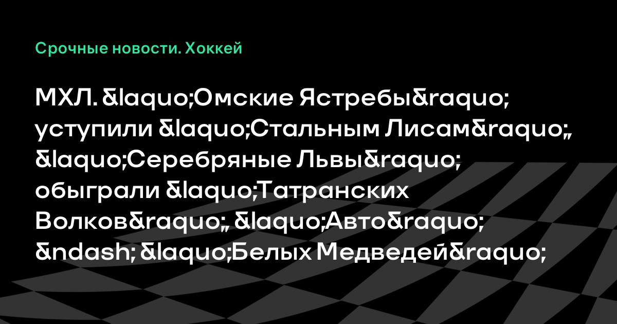 МХЛ. «Омские Ястребы» уступили «Стальным Лисам», «Серебряные Львы» обыграли «Татранских Волков», «Авто» – «Белых Медведей»