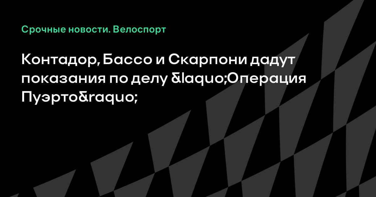 Испанский велогонщик Альберто Контадор, а также итальянцы Иван Бассо и Микеле Скарпони и другие спортсмены дадут свидетельские показания по известному допинговому скандалу «Операция Пуэрто», который произошел в Испании в 2006 году.