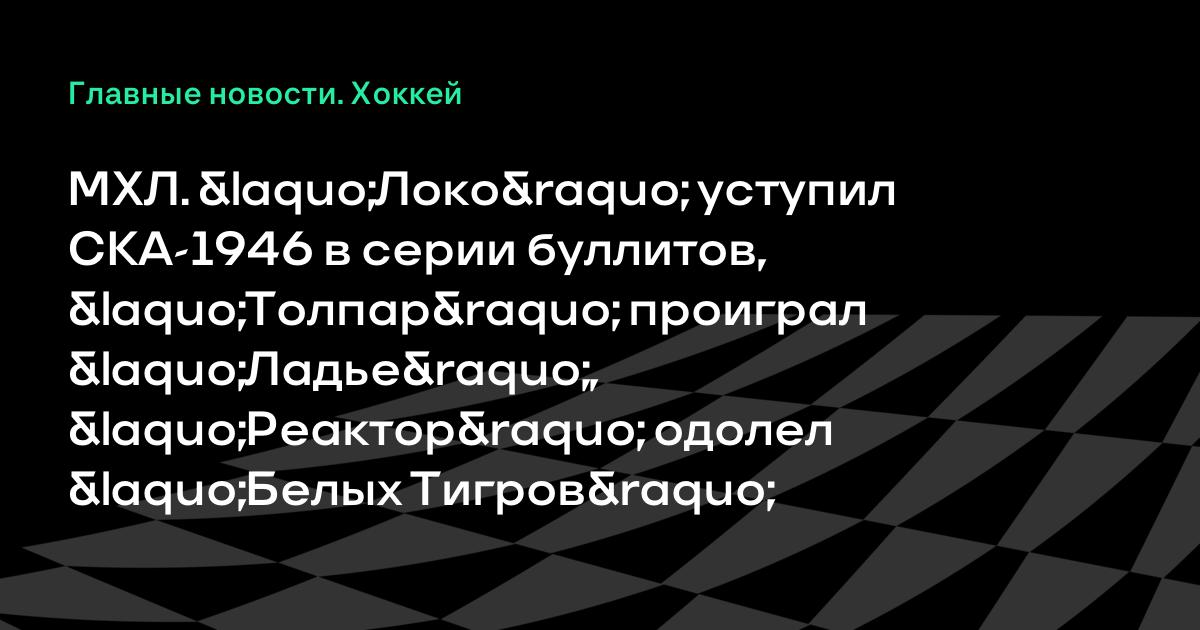 МХЛ. «Локо» уступил СКА-1946 в серии буллитов, «Толпар» проиграл «Ладье», «Реактор» одолел «Белых Тигров»