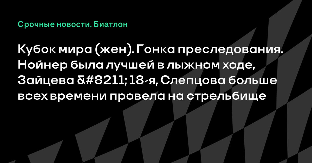 Кубок мира (жен). Гонка преследования. Нойнер была лучшей в лыжном ходе, Зайцева – 18-я, Слепцова больше всех времени провела на стрельбище