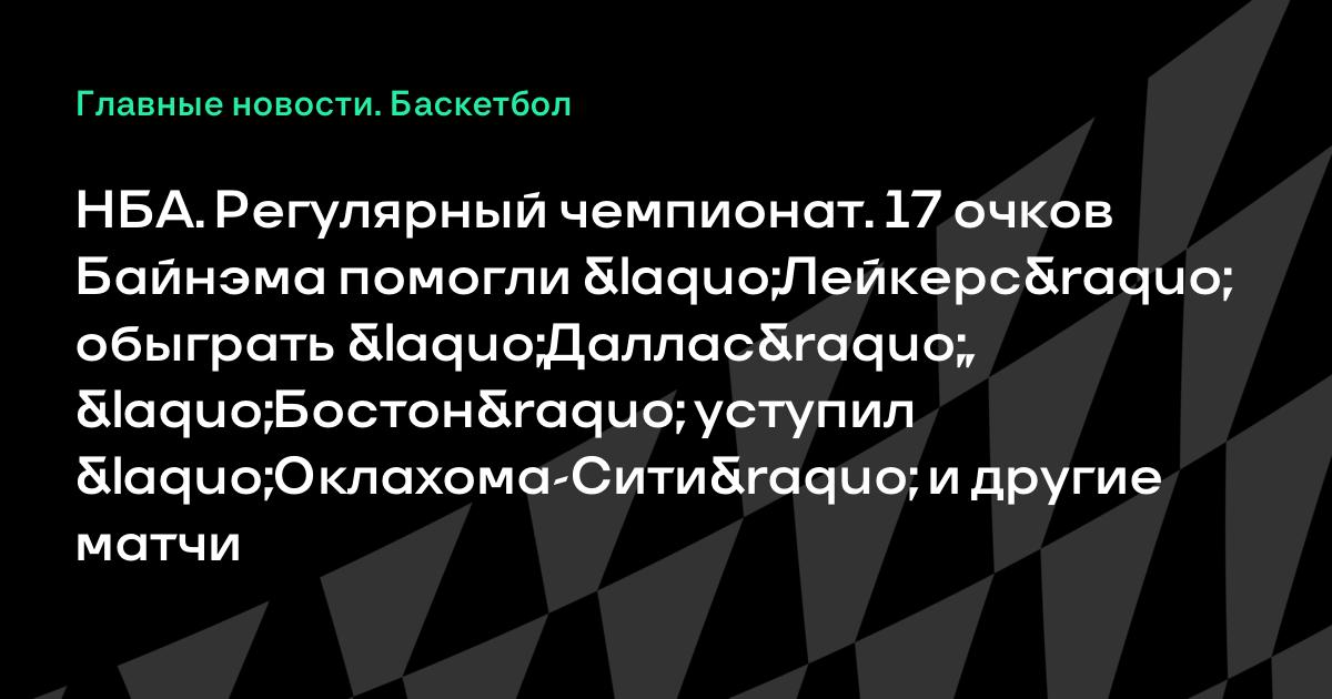НБА. Регулярный чемпионат. 17 очков Байнэма помогли «Лейкерс» обыграть «Даллас», «Бостон» уступил «Оклахома-Сити» и другие матчи