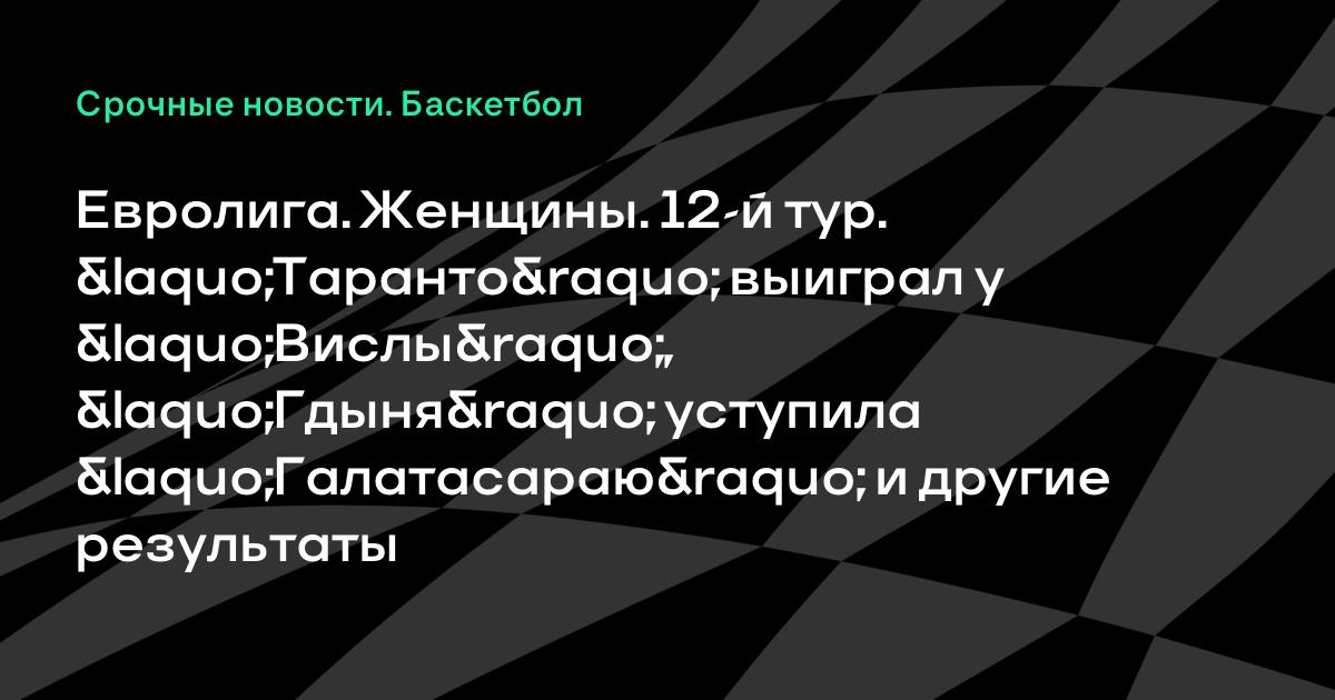 Евролига. Женщины. 12-й тур. «Таранто» выиграл у «Вислы», «Гдыня» уступила «Галатасараю» и другие результаты