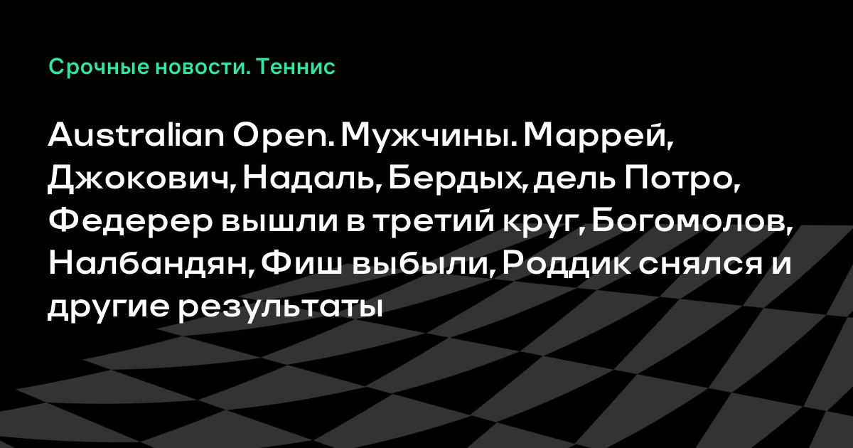 Australian Open. Мужчины. Маррей, Джокович, Надаль, Бердых, дель Потро, Федерер вышли в третий круг, Богомолов, Налбандян, Фиш выбыли, Роддик снялся и другие результаты