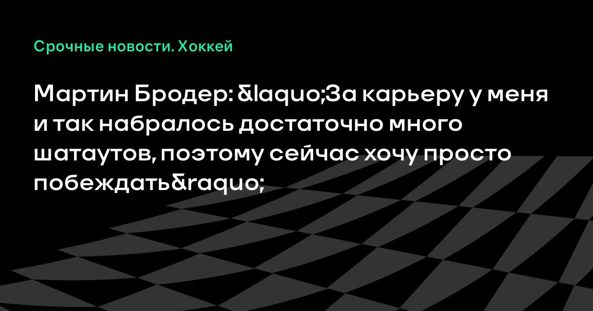 Мартин Бродер: «За карьеру у меня и так набралось достаточно много шатаутов, поэтому сейчас хочу просто побеждать»