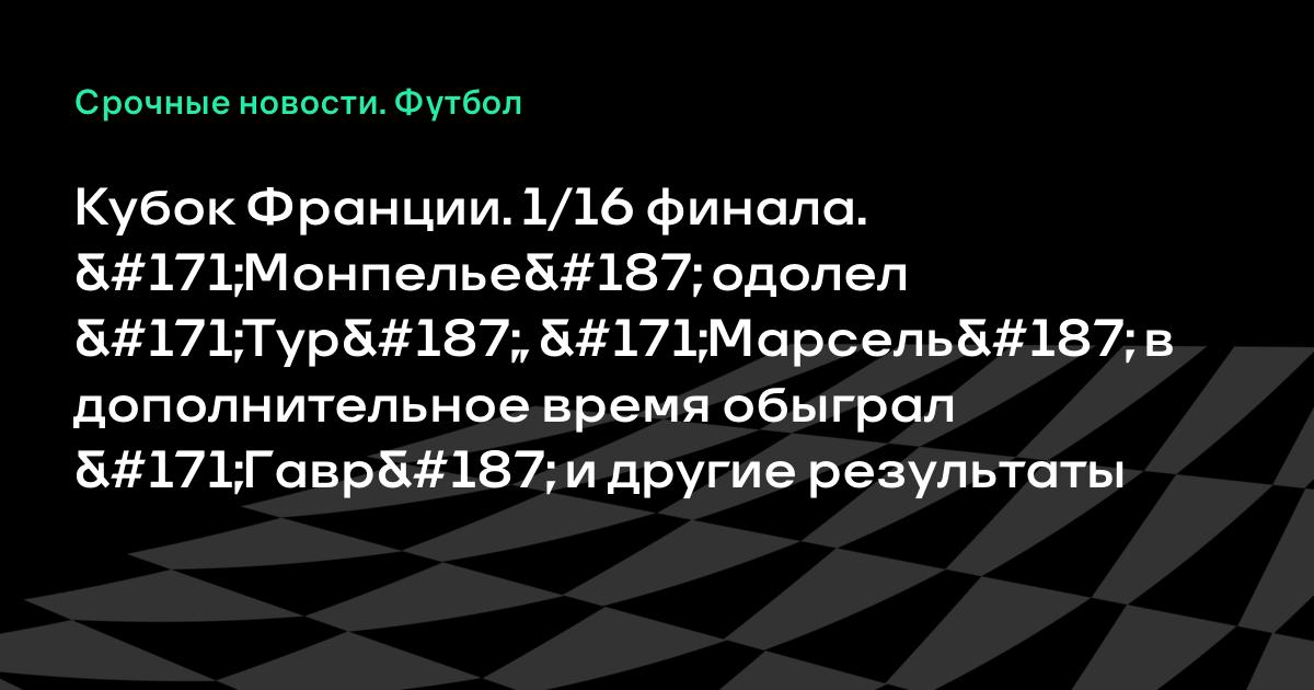 Кубок Франции. 1/16 финала. «Монпелье» одолел «Тур», «Марсель» в дополнительное время обыграл «Гавр» и другие результаты