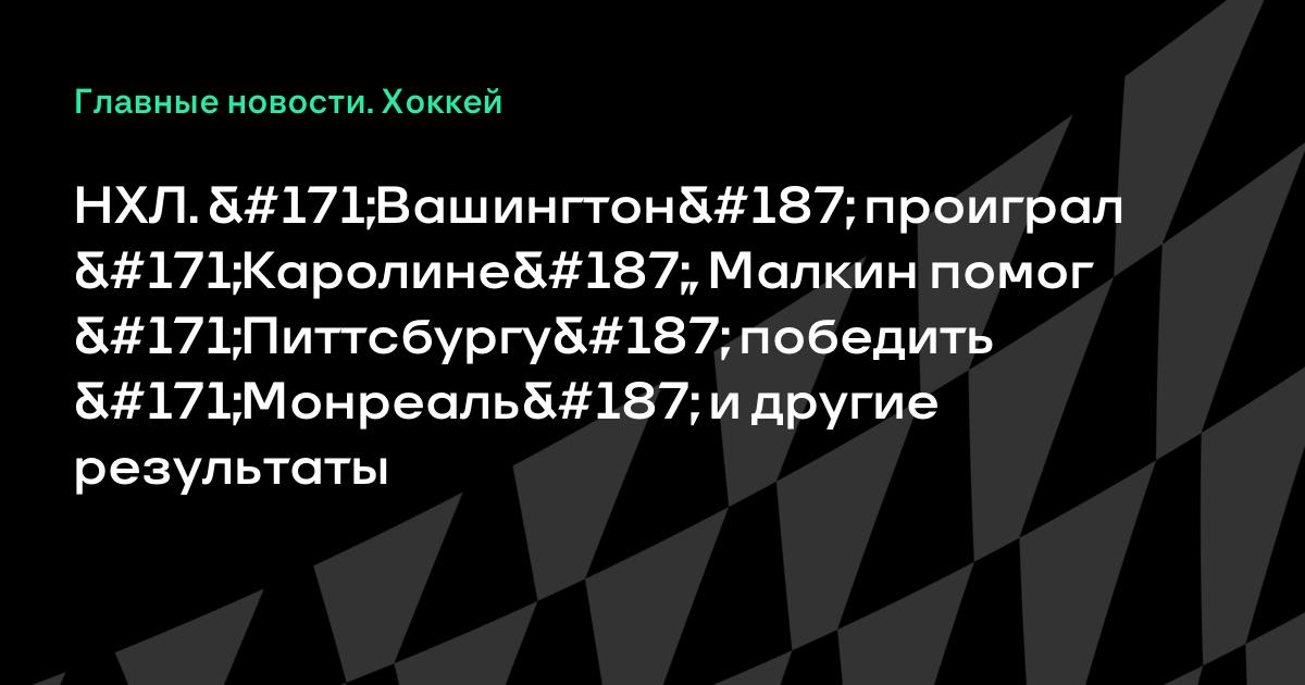 НХЛ. «Вашингтон» проиграл «Каролине», Малкин помог «Питтсбургу» победить «Монреаль» и другие результаты