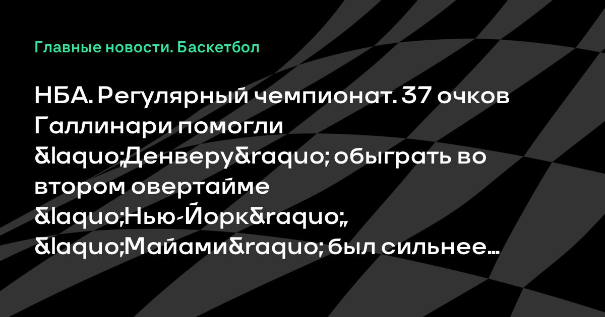 НБА. Регулярный чемпионат. 37 очков Галлинари помогли «Денверу» обыграть во втором овертайме «Нью-Йорк», «Майами» был сильнее «Филадельфии» и другие результаты
