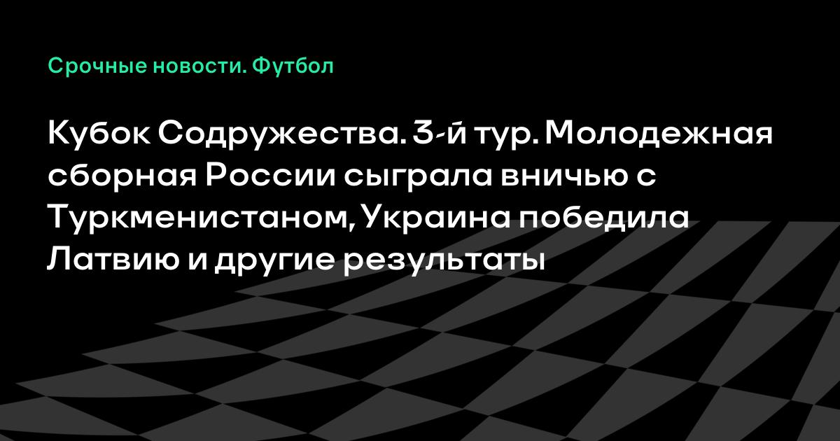 Кубок Содружества. 3-й тур. Молодежная сборная России сыграла вничью с Туркменистаном, Украина победила Латвию и другие результаты