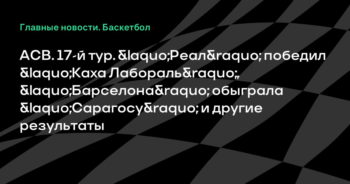 ACB. 17-й тур. «Реал» победил «Каха Лабораль», «Барселона» обыграла «Сарагосу» и другие результаты