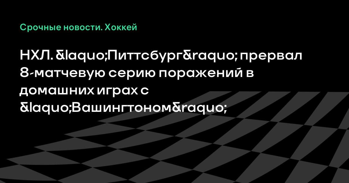 НХЛ. «Питтсбург» прервал 8-матчевую серию поражений в домашних играх с «Вашингтоном»