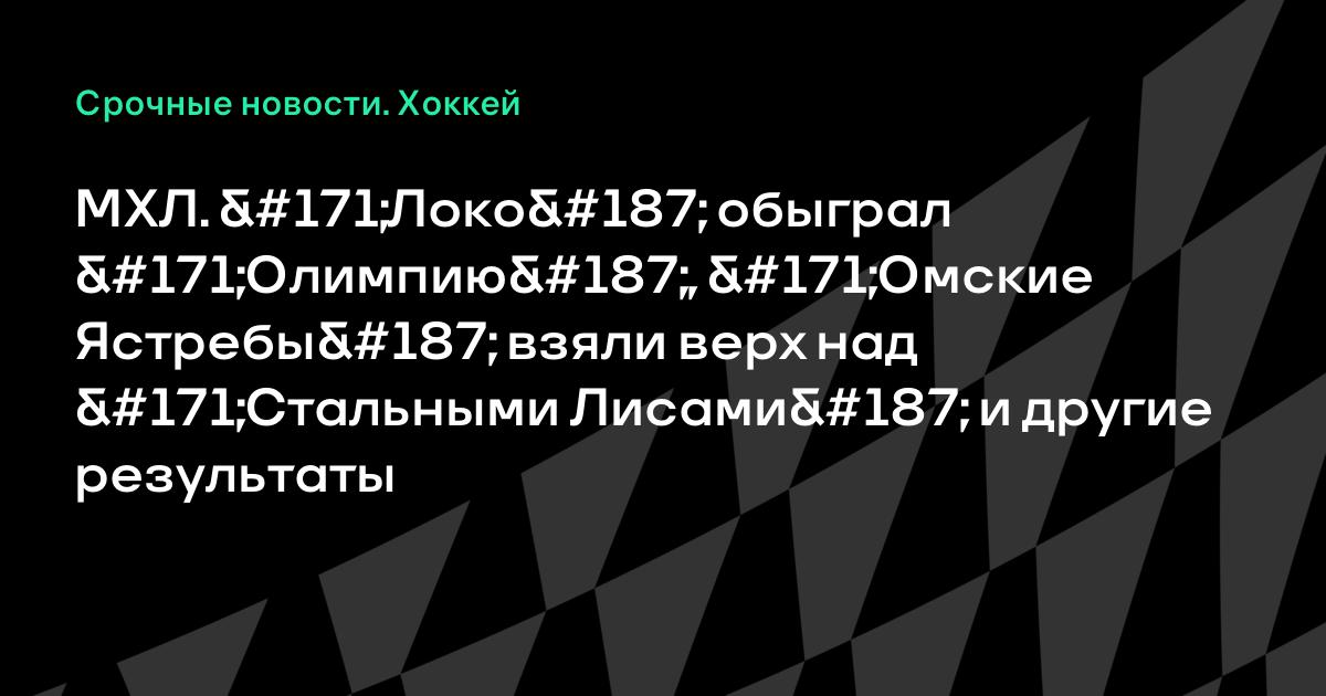 МХЛ. «Локо» обыграл «Олимпию», «Омские Ястребы» взяли верх над «Стальными Лисами» и другие результаты
