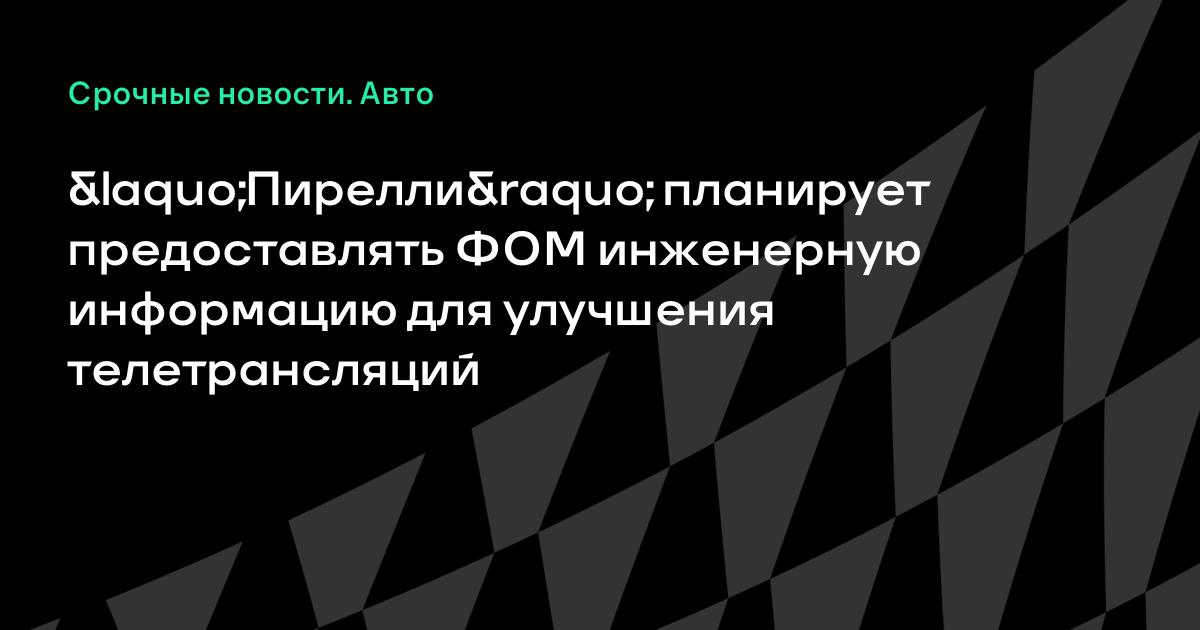 «Пирелли» планирует предоставлять ФОМ инженерную информацию для улучшения телетрансляций