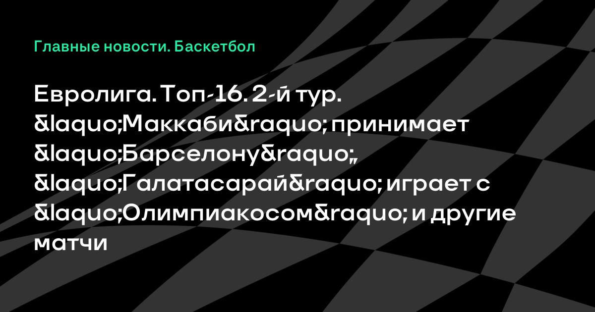 Евролига. Топ-16. 2-й тур. «Маккаби» принимает «Барселону», «Галатасарай» играет с «Олимпиакосом» и другие матчи