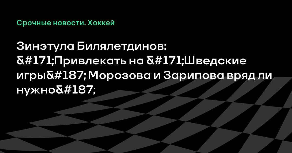 Зинэтула Билялетдинов: «Привлекать на «Шведские игры» Морозова и Зарипова вряд ли нужно»